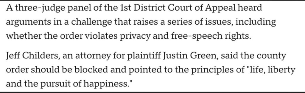 The significance of Tanenbaum’s mask decision, rendered the following June, has never been fully appreciated. This was the very first case (and to this day, I believe, the only mask case) where an appellate court in the United States ruled against one of the central pandemic mitigation policies on constitutional grounds. Even though it wiped out mandatory masking in 33 counties in Florida, and caused the rest of the Sunshine State’s 67 counties to begin quietly retreating from their own mask orders, media stubbornly refused to report on it.