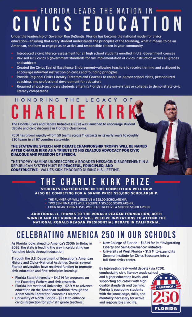 That lesson has stayed with me my entire life — and it’s exactly what Governor Ron DeSantis is encouraging through Florida’s Civics and Debate Initiative (FCDI).